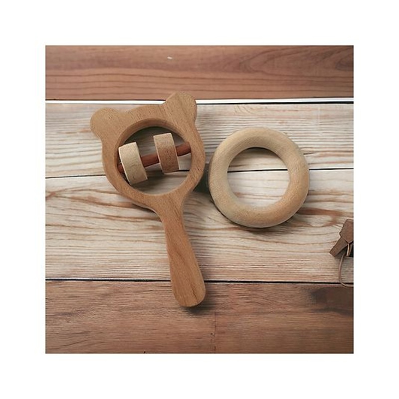 neemtoys Neem Wooden Combo of Rattle & Teether- Mickey Head & Ring Shapes