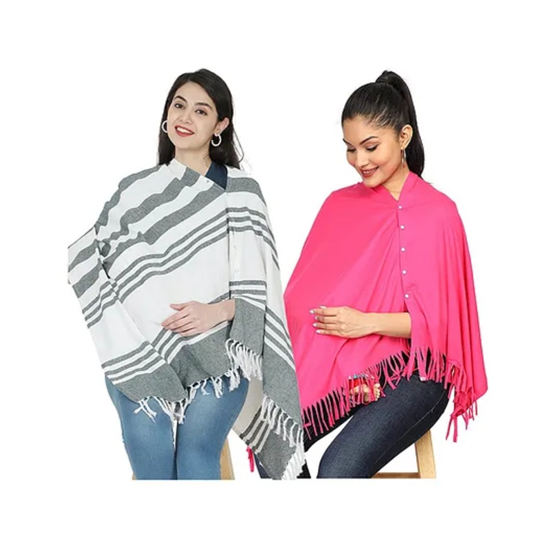 Nene Mother’s Multi g Purpose Large Size Nursing Feeding Scarf Wrap Stole Solid Pack of 2 – Green & Pink