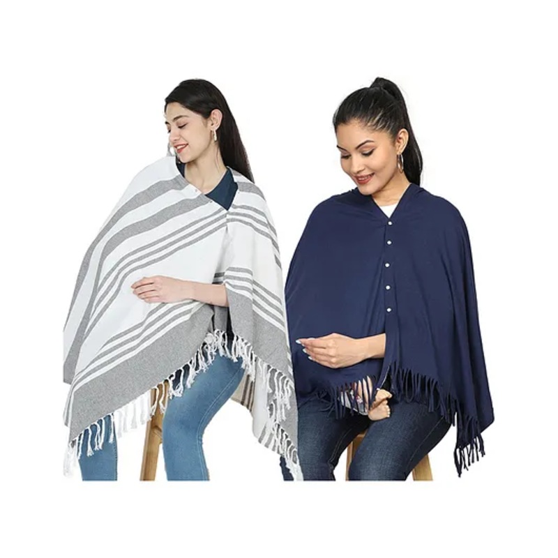 nene Mothers Multi-Purpose Large Size Nursing Feeding Scarf-Grey & Navy Blue