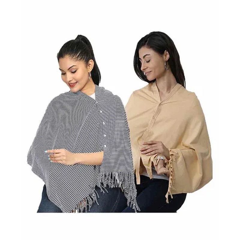 Multiple ways to wear during pregnancy and beyond; wear as a nursing shawl, scarf, cape or ponchoEasy to wash, you can throw it in the washer and dryer without any troubleConveniently folds away for compact storage in your baby bag unlike comparable boned designsEnable you to breastfeed your baby discreetly, as well as to cover your baby car seat, baby chairs and shopping cart seats for full protection of your little oneThis breastfeeding cover up is made from stretchable soft cotton that drapes beautifully and offers a glamourous look with super soft feelSpecificationsBrand – NeneType – Multi Purpose Breast Feeding Nursing ShawlFabric – 95% Cotton 5% SpandexDimensions – L 180 x B 70 cmProduct DescriptionMade from the most luxurious cotton, the nursing shawl is super soft and gentle for you and your baby’s skin. This ultimate, versatile maternity essential is designed to be stylish and functional yet offer complete discretion while breastfeeding. The side poppers allow you to transform your look with an easy transition from nursing shawl into a scarf, cape or poncho to wear anytime, anywhere. Perfect for use during pregnancy, nursing and more, allowing you to cocoon yourself and your baby in this luxuriously soft wrap.Items included in the Package2 Multi Purpose Breast Feeding Nursing Shawl