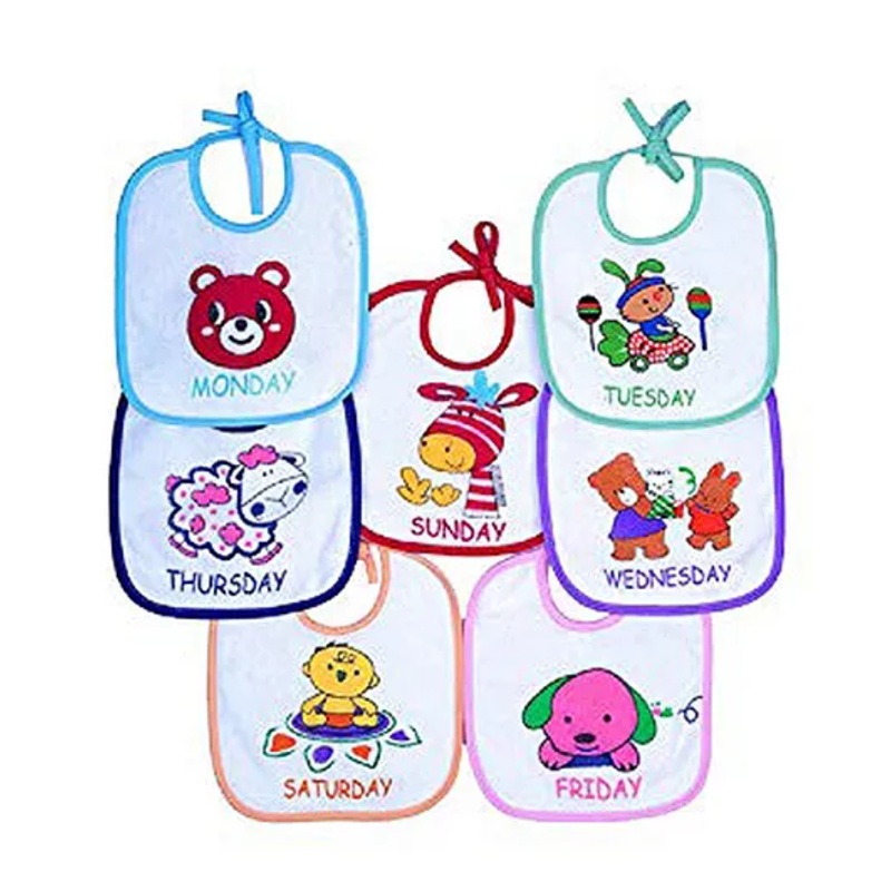 NeonateCare Animal Theme Soft Week Days Printed Baby Bibs -Pack of 7 (Multicolor)