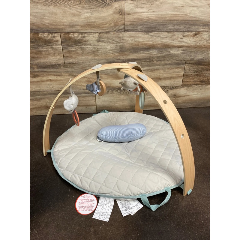 Condition: New/Like NewIncludes 6 removable activity toys: plush bear, bead rattle, mirror, natural rubber apple toy, wooden ring toy and tummy time pillow, SlimFold wooden toy bars and removable activity toys collapse for self-storage.NEW, taken out of bo