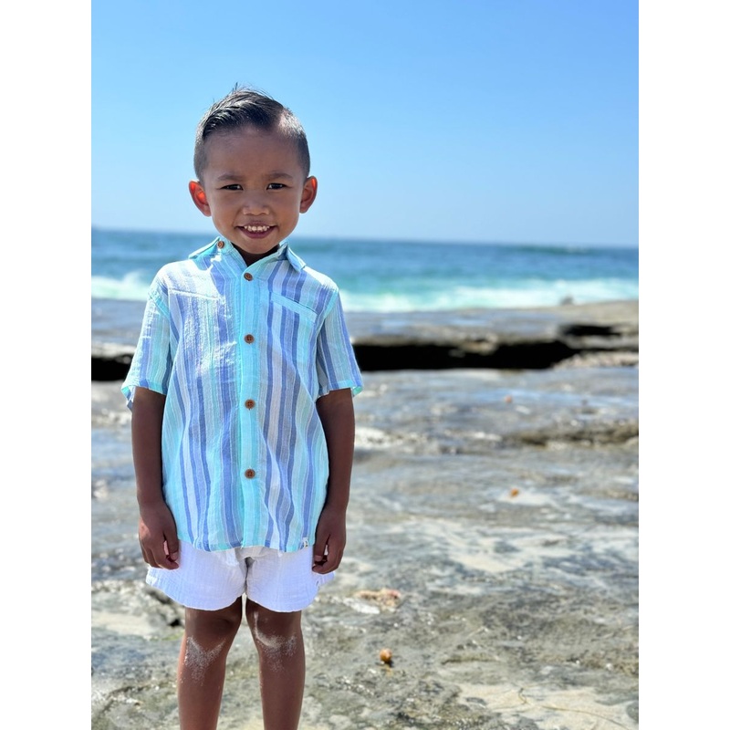 Newport Woven Shirt- Blue/Seafoam Stripe