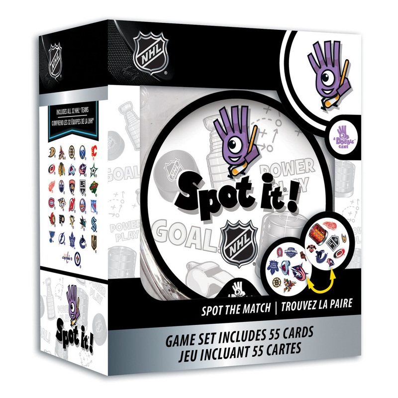 NHL Spot It GameDESCRIPTIONSpot It! Officially licensed NHL League-NHL Edition puts an exciting spin on the family favorite. Just like the other Spot It! games, this League-NHL Edition comes with a variety of unique symbols for you to identify and match fr