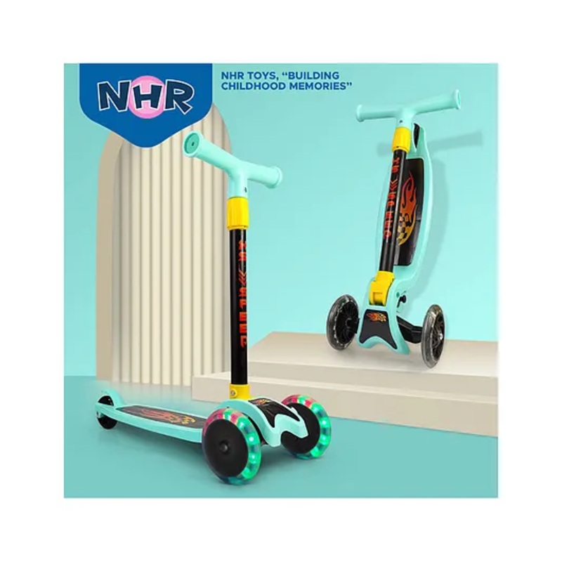 1) 4 Level Adjustable Height The scooter features a 4-level adjustable height system, allowing you to customize the height to fit your child’s growing needs. The height can be adjusted from 60 CM to 75 CM, making it suitable for kids of different ages and sizes.2) LED Light Up Wheels The scooter comes with LED light up wheels that add a touch of excitement and safety to the ride.3) Foldable Design The scooter features a foldable design that makes it easy to store and transport. The scooter can be folded up and carried in a bag or stored in a closet, making it perfect for families who love to travel.4) PU Wheels and Brakes The scooter comes with high-quality PU wheels and brakes that provide a smooth and safe ride.5) Durable Construction The scooter is made from high-quality, durable materials that can withstand rough play and minor crashes. providing a sturdy and long-lasting ride.6) Develops Balance and Coordination The NHR Kick Scooter helps develop kids’ balance and coordination as they learn to ride and navigate.Specifications-Brand – NHRType – Kids ScooterAge – 2 YearMaterial – Plastic & IronProduct Dimensions- L 53 x B 21 x H 75 cmWeight- 1.7 KgProduct Description-Get ready to experience the thrill of riding with the NHR 4 Level Adjustable Height Smart Kick Scooter, designed specifically for kids aged 2 years. This innovative scooter is packed with advanced features that provide a fun and safe ride for your little ones. With its adjustable height, LED light up wheels, and foldable design, this scooter is perfect for kids who love to ride and explore. Order yours today and watch your child’s face light up with joy and excitement!Items Included in the Package-1 Kick Scooter