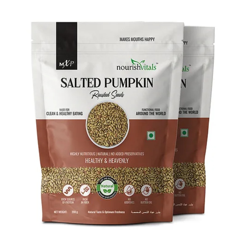 NourishVitals Salted Pumpkin Roasted Seed Highly Nutritious Natural No Added Preservatives Healthy & Heavenly Pack of 2 – 400 gm