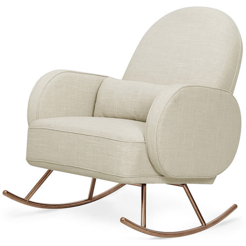 A harmonious balance of rounded volumes rests atop tubular brass runners. The Compass rocker is at once a study in geometry and a place for luxurious repose as its cushions are plush, yet supportive and its metal base ensures a free-flowing, rocking cadence.