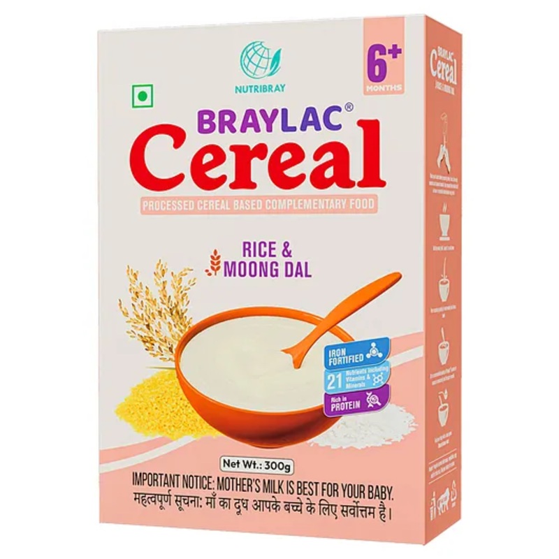 Nutribray Braylac Cereal Rice & Moongdal | 300 g | Bag in Box
