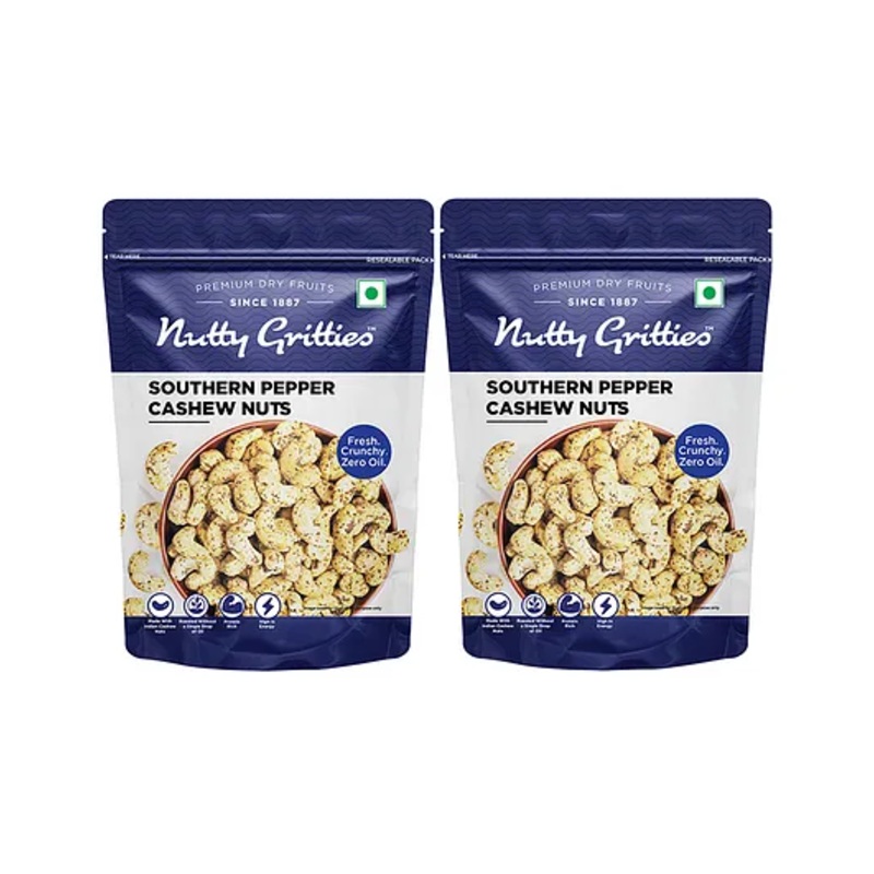 Nutty Gritties Southern Pepper Cashew Nuts Pack of 2 – 200 gm Each