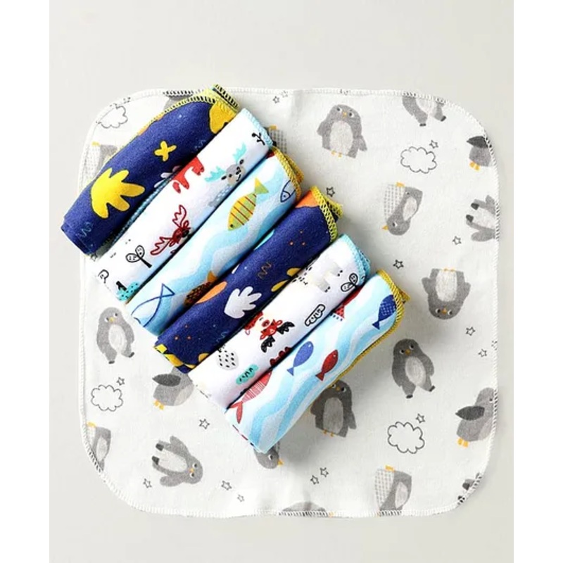 OHMS Interlock Knit Wash Cloths Penguin & Sea Life Print Pack of 7 L 22 x B 21.5 cm – Blue & Light Blue