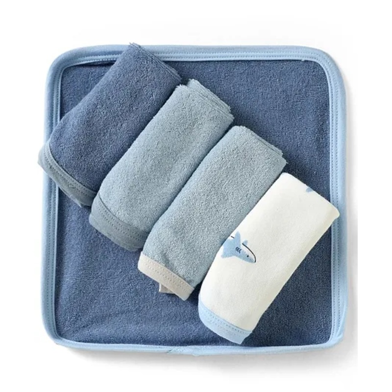 OHMS Terry Knit Wash Cloth with Shark Print & Solid Pack of 5 L 24 x B 22 cm – Multicolor