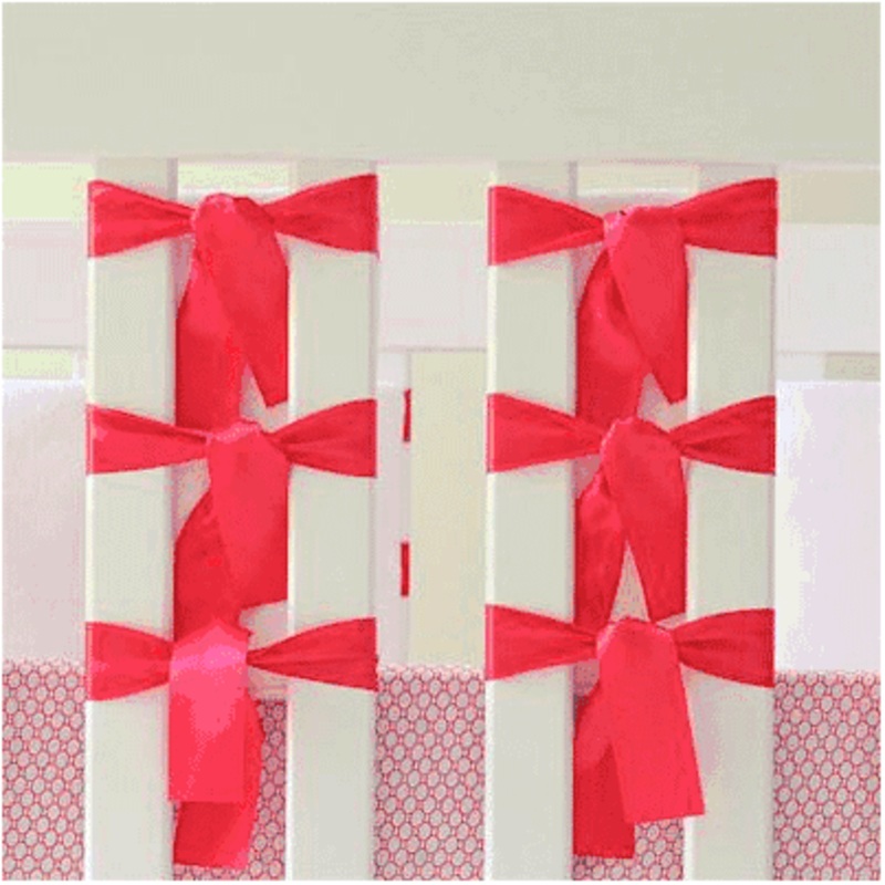 Oliver B Ventilated Slat 20 Pack Bumpers in White Minky and Satin Fuchsia Ties