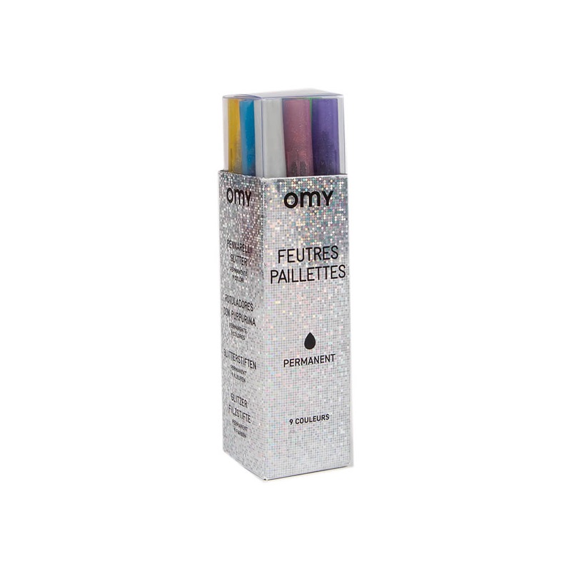 Bring sparkles to your colorings with the OMY Design Glitter Markers! The shimmery colors bring depth and sparkle to your drawings. Press markers down to bring glitters out. Use on any color paper and surfaces.OMY Design Glitter Markers Details:Includes 9