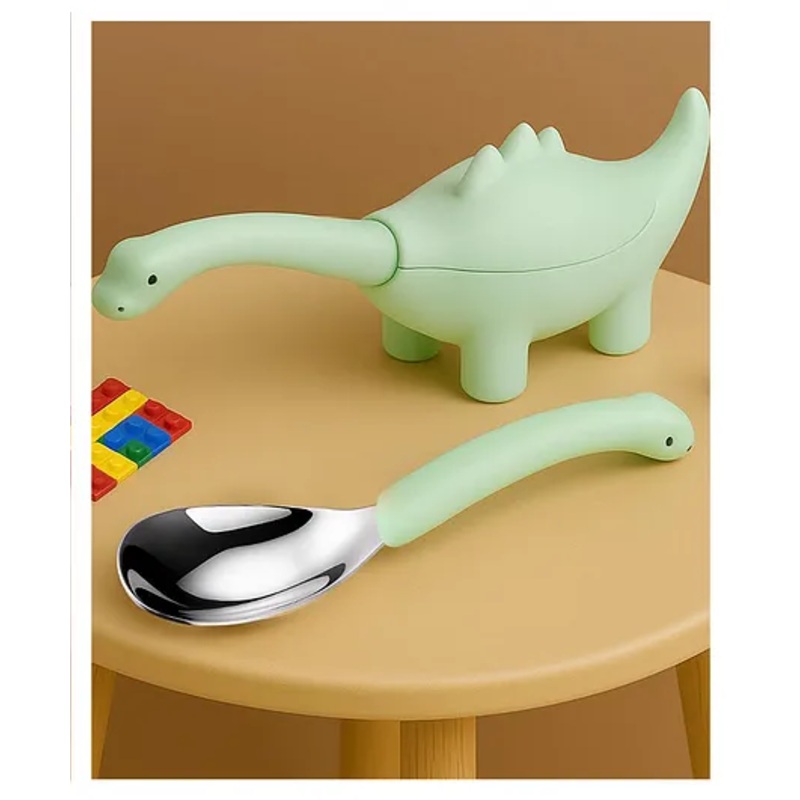 A 316 stainless steel base wrapped in food-grade silicone ensures durability and comfort. Sized at 14.5cm, it’s ideal for small hands starting to self-feed. BPA-free, rust-resistant, and heat-safe, it can be boiled or sterilized easily. Its lightweight build and non-slip grip offer great control for babies. The dino-themed green color turns feeding into a fun, sensory experience that encourages routine.