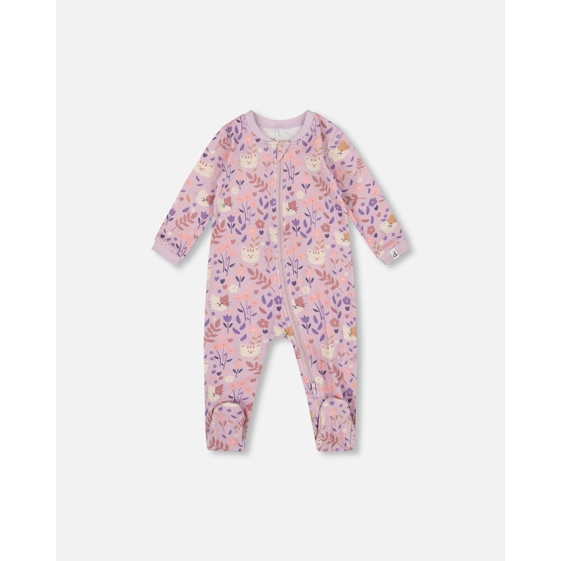 One-Piece Organic Cotton Pajama Lilac Cat Print