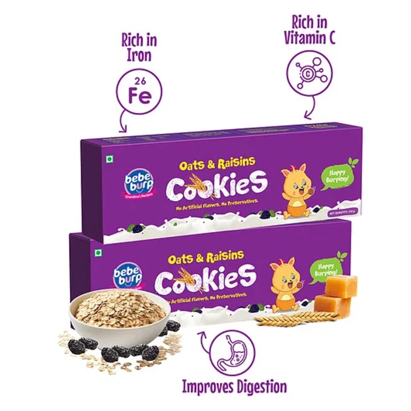 Organic Bebe Burp Oats & Raisins Baby Cookies, No Preservatives, 8M+, 150g Twin Pack