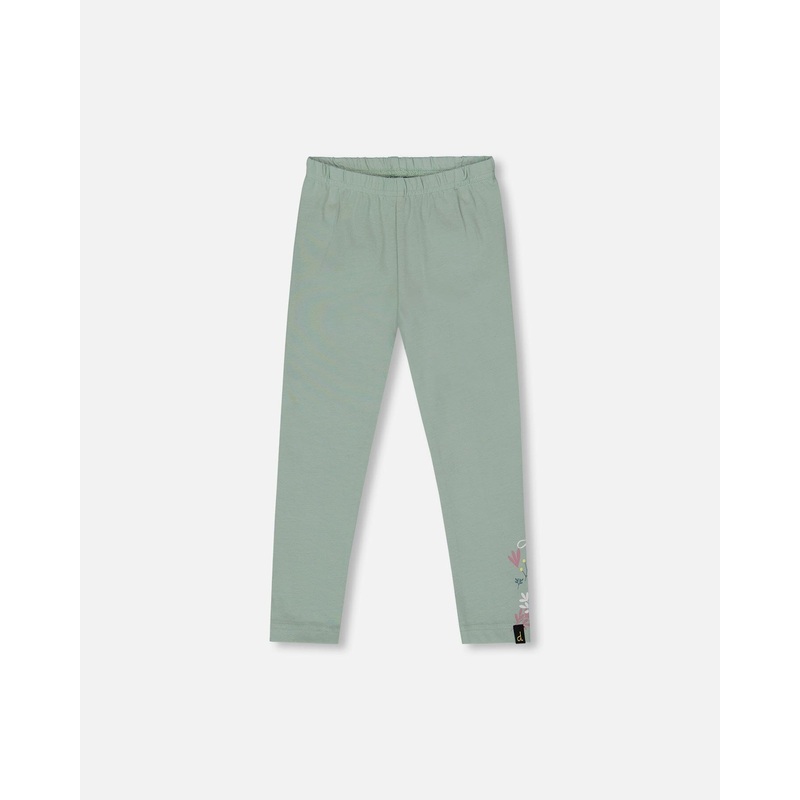 Organic Cotton Jersey Leggings Jade Green With Floral Detail