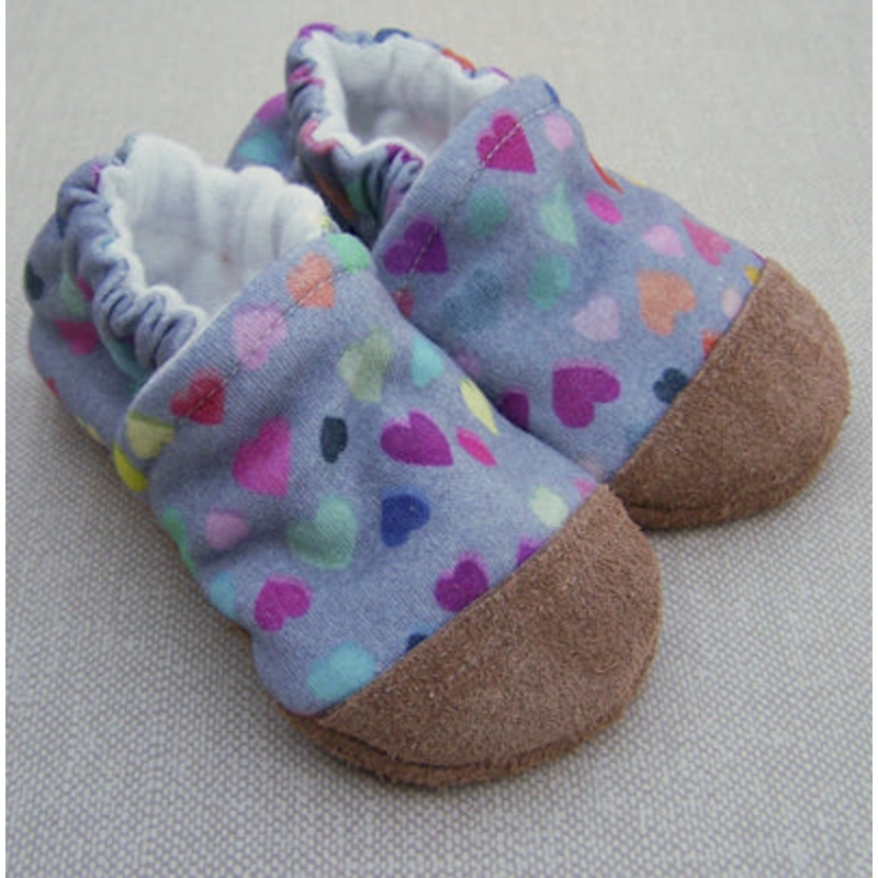 Organic Cotton Knit Slippers – Watercolor Hearts 3-6m