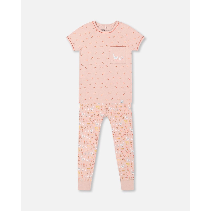 Organic Cotton Two Piece Pajama Set Pink Printed Goose
