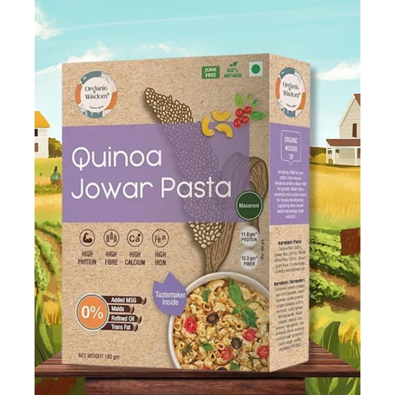 Organic Wisdom Protein Rich Quinoa Jowar Pasta for Kids, 180g | No Maida, MSG or Refined Oil