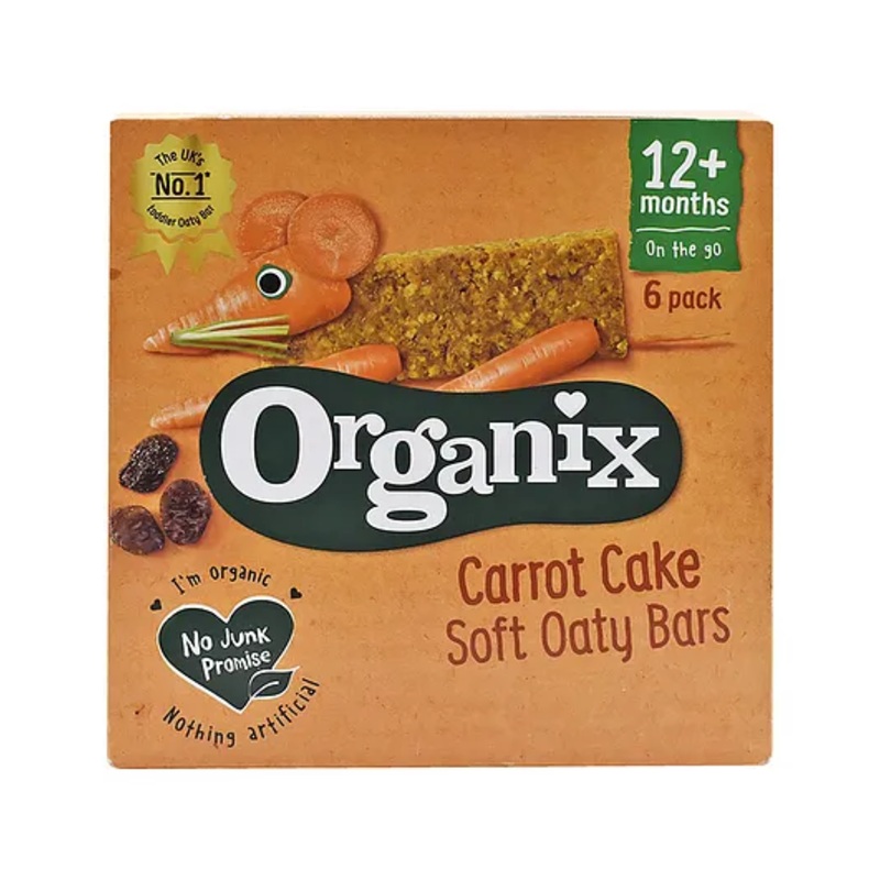 With added calcium, iron and C vitaminsNo added saltNo added sugarSuitable for vegetarianSpecificationsBrand - HeinzType - Oaty BarsAge - 12+ MonthsQuantity - 180 gProduct DescriptionOrganix Soft, scrummy and deliciously fruity. These carrot cake soft oaty