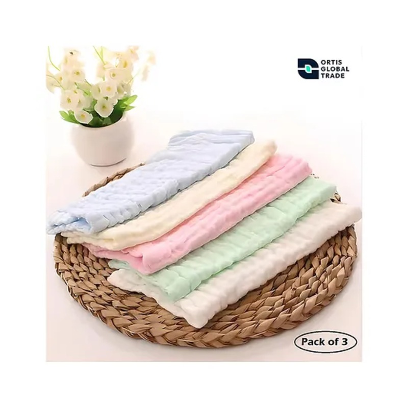 Ortis baby napkin Plain Color Square Scarf (pack of 3) (Color May Vary)