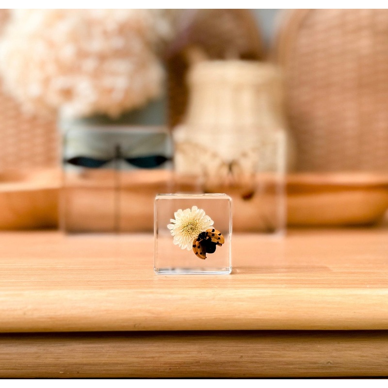 Ages 3+Introduce your child to nature with our playful Ladybird and Flower Acrylic Resin Block.Encased in durable resin, a preserved ladybird and delicate flower create a vibrant miniature world. Ideal for sensory play and encouraging tactile exploration,