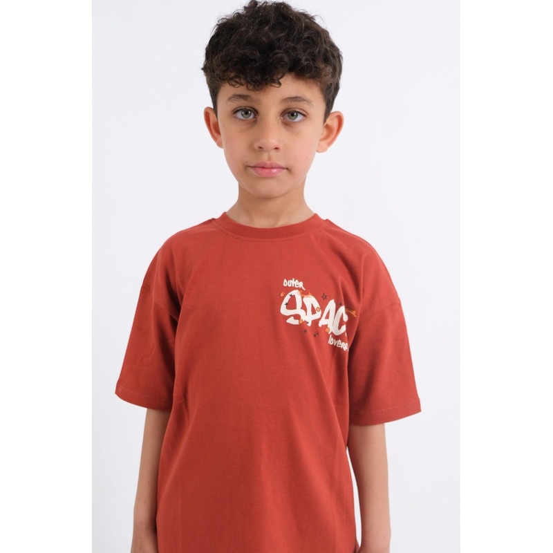 Dress your little one in this comfortable short-sleeved t-shirt. This oversized t-shirt comes in standard body length with a straight hemline and a round neckline, making it the perfect choice for a hot day out. It's made of 100% cotton. It has a fun print