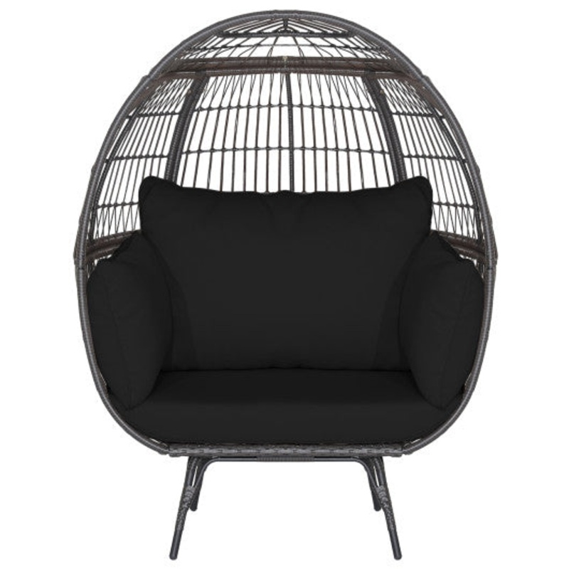 Oversized Indoor Wicker Egg Chair With Sturdy Metal Frame for Patio-Black