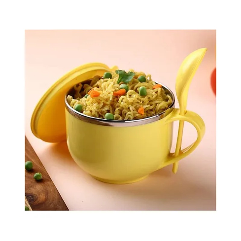 500 ml Capacity Ideal size for holding pasta, soup, rice, Maggie, or other meals, providing enough portion size without being bulky.Airtight and Leak-Proof The secure, airtight lid ensures your food stays fresh while preventing leaks, making it safe to carry in bags or lunch boxes.Stainless Steel Construction Made from high-quality, durable stainless steel, which is resistant to rust and ensures long-lasting use.Comes with Spoon & Fork Includes a spoon and fork for easy and convenient eating, eliminating the need to carry additional utensils.Portable and Convenient Lightweight and easy to carry, making it perfect for school, office, travel, or home use.Versatile Use Suitable for a variety of meals, such as noodles, soup, rice, and snacks, making it a great all-in-one food container.