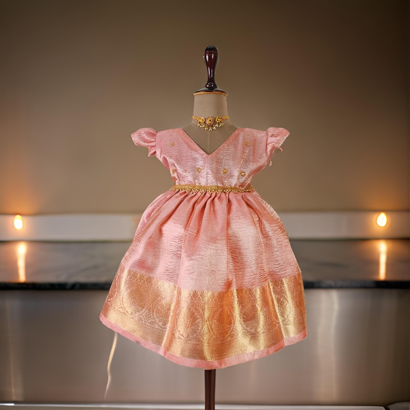 NY76387407Peach Colour Crush Tissue Silk Frock
