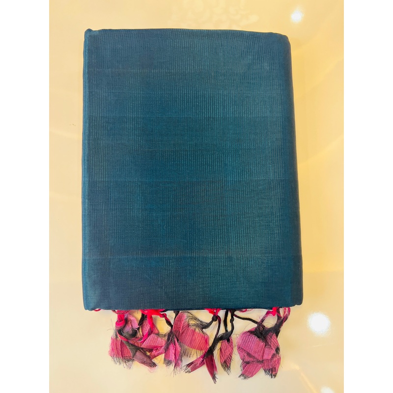 Peacock Blue Pure Mangalagiri Silk Plain Saree With Tie And Die Pallu & Digital Print Blouse