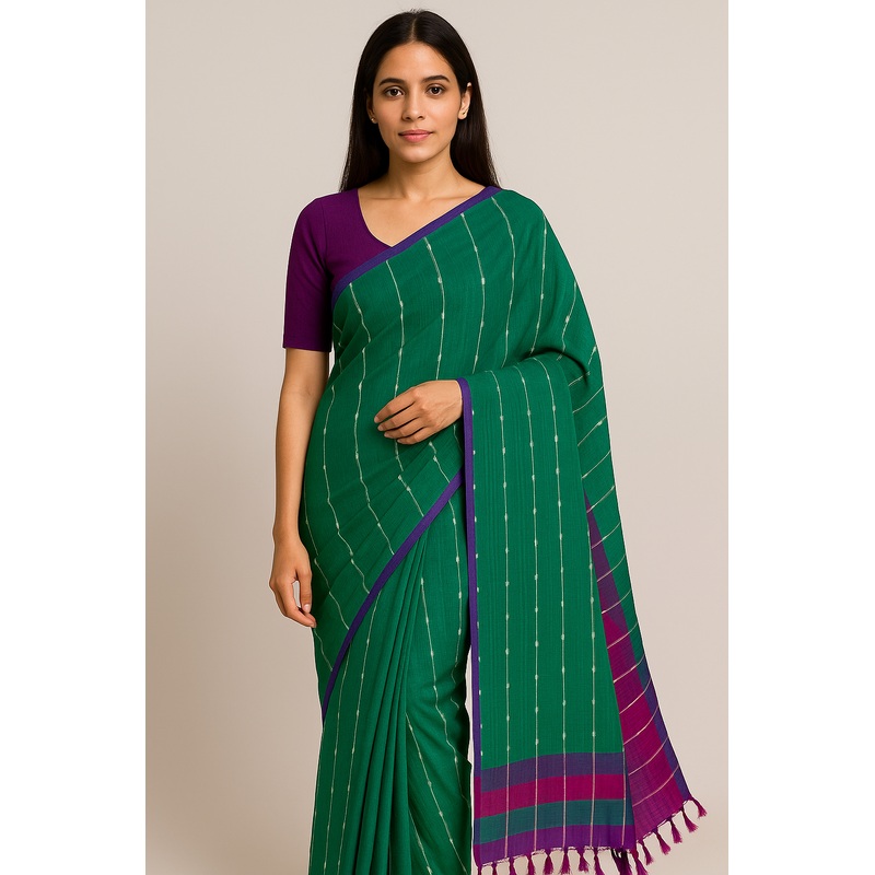 Peacock Green Colour Pure Mangalagiri Silk Saree With Zute Lines