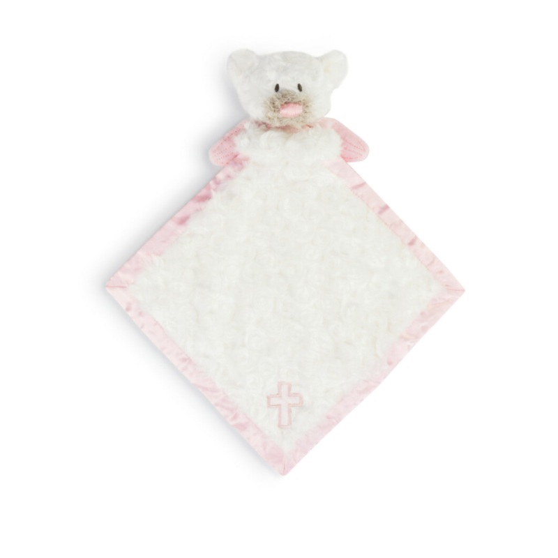 The cute Pink Guardian Angel Bear Blankie is a wonderful gift for any little one. This cute square blankie features super soft materials in a neutral pink color along with a playful bear character with wings to give the appearance of a guardian angel. This piece is part of the curated Tender Blessings nursery collection. This line will make celebrating lifes little moments fun and memorable, such as getting ready for bed, performing nighttime prayers or enjoying family time. This line features a collection of super soft plushies, blankies and more that will help them feel safe and snuggly at bedtime and will encourage spirituality. Each piece is crafted using safety-tested materials, soft machine washable fabrics and beautiful colors for the perfect companion. This blankie is the perfect present for any little one, new parents or expecting parents on your list.