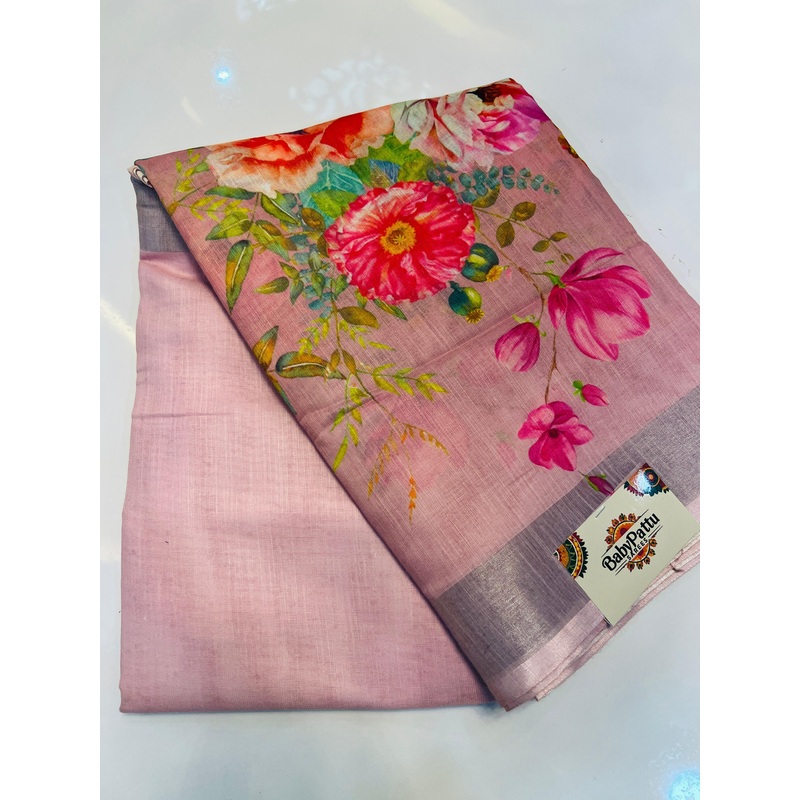 Pink Linen || Alia Bhat Inspired Floral Print BabyPink Saree