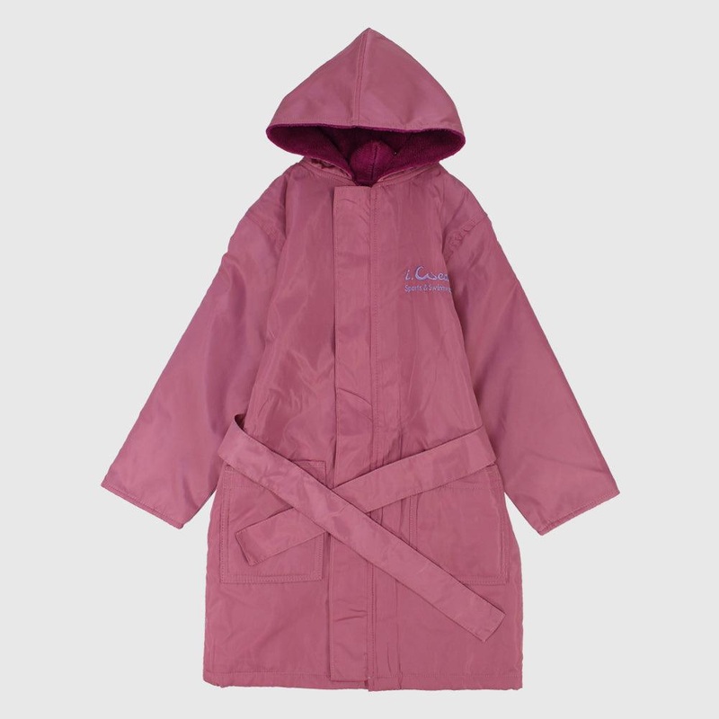 Keep your little one warm and dry after a nice swim or training session. This robe features long sleeves, two pockets, and a hoodie. The inner part is made of towel fabric for fast drying.