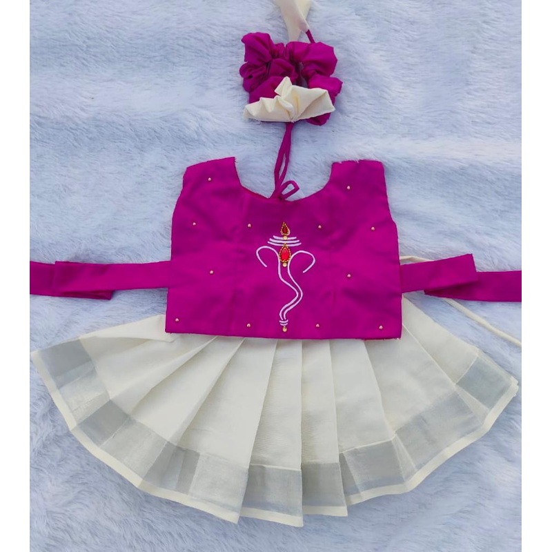 Pink & White Kasuvu Cotton Pattu Pavada