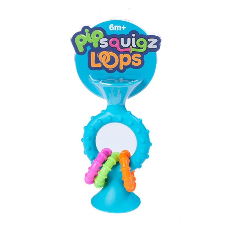 Flip and spin the textured, plastic rings to hear them rattle brightly. Press their suction cups onto any smooth, non-porous surface to set up a stationary play space and then pull them off to hear their loud and exciting POP. Theyre sure to become babys new favorite toy! Early playtime learning really sticks when little ones start exploring with the pipSquigz Loops.