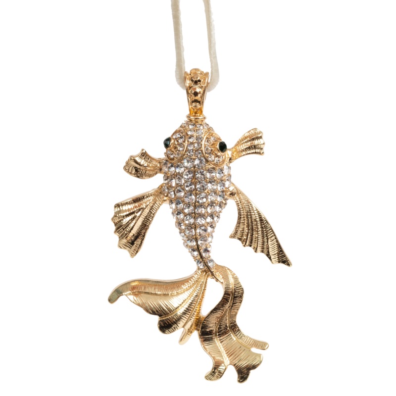 Inspired by her mothers flare for holiday decorating, Joanna Buchanan has turned her love of travel and knowledge gleaned from twenty years in fashion retail into an eclectic line of tabletop, barware, gifts, and decor. Decorous and whimsical,dangling from the tree or the mantle, the Pisces Hanging Ornament enlivens any home for the holidays with its shimmering cheer.Packaged in an organza bag, its ideal for gifting, especially for any astrology-loving friends.