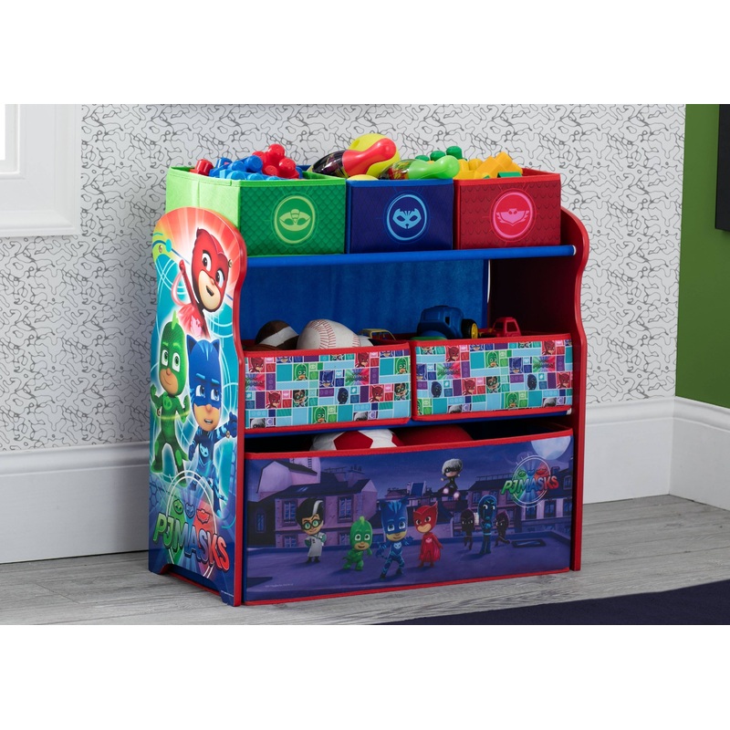 Ready to save bedrooms or playrooms from clutter, this PJ Masks Multi-Bin Toy Organizer will help make cleaning up fun and easy! Covered in colorful graphics of their favorite crime fighters, this practical storage solution is supported by a sturdy frame a