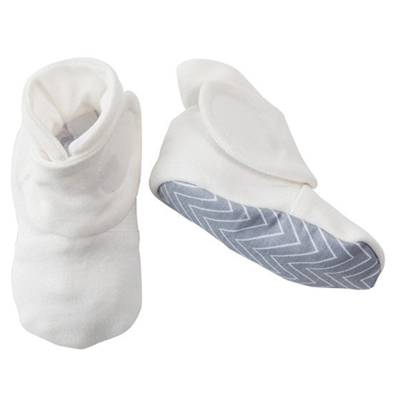 These super comfy booties feature our grey chevron print on the sole. With a two part closure system to ensure they stay on and fit your little one perfectly. 0-6 months.Machine washable.