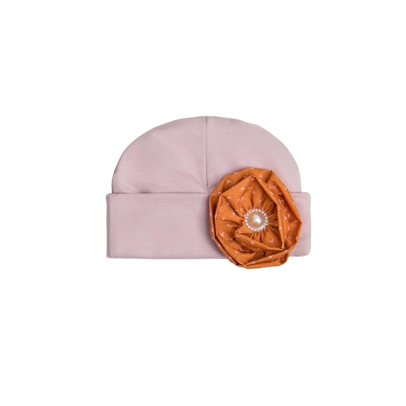 A winning combination, purple tones and mustard floral accents are here to please in a picture perfect style. Match this baby cap with the gown and blanket to complete the look!