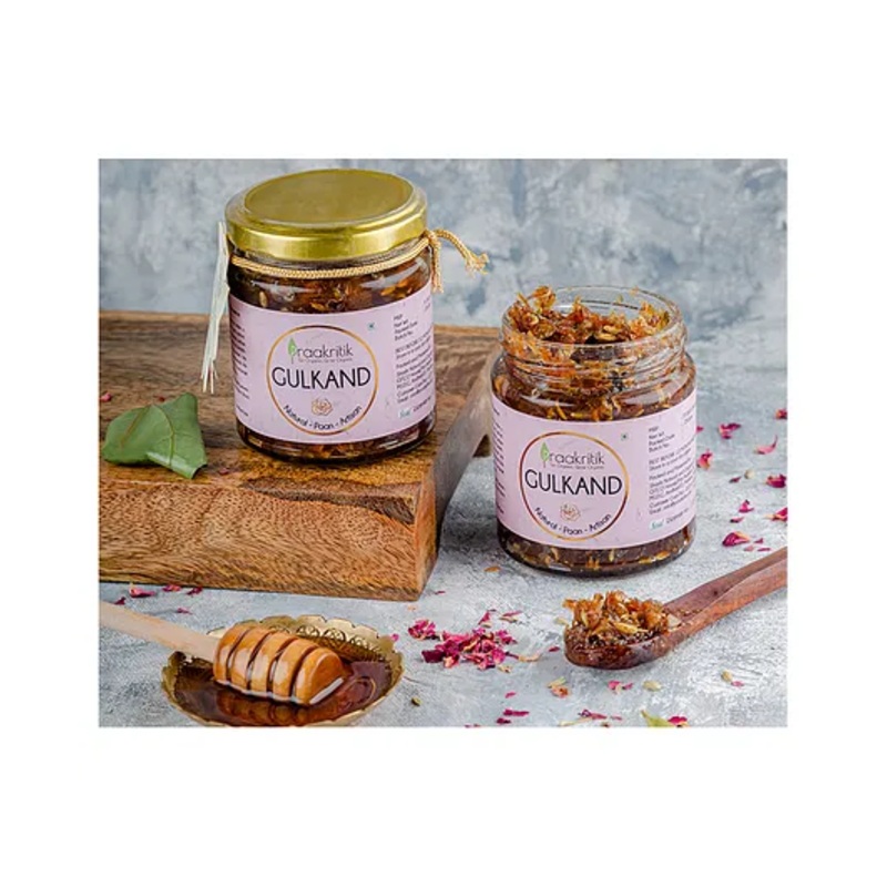 Made with fresh rose petals and mishri, great for kids and adults.Organic in naturePerfect for giftingIt can boost the gut bacteria and help get rid of acne marks as well.IngredientsDamask rose petals, betel leaves, elaichi, honey, mishri (rock sugar)Speci