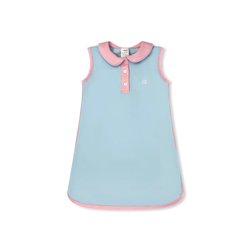 ThePresley Dressis a stylishsleeveless polodesign, featuring a playful mix ofCotton Candy BlueandCotton Candy Pink. Perfect for warm days on the go, this dress blends sporty charm with classic style, making it a must-have for any active little one.