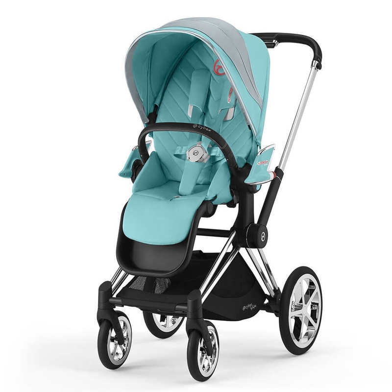 Commanding attention with sleek tailfins, dazzling chrome accents, and an attention-grabbing turquoise hue, this Priam from the Car collection by Jeremy Scott is the perfect marriage between luxurious comfort and distinctive style.Timeless design elements are paired with ingenious features that meet the highestexpectations of parents.