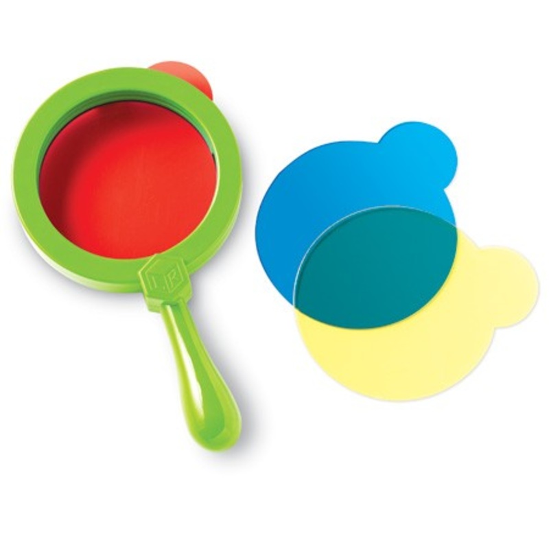 See the world in a new lightand choose your color too! Place up to 3 interchangeable, primary-color lenses into the frame to create secondary colors and hours of sensory fun!Includes:1 one sturdy lens frame (with 3 slots) and 3 colored lenses (red, yellow,