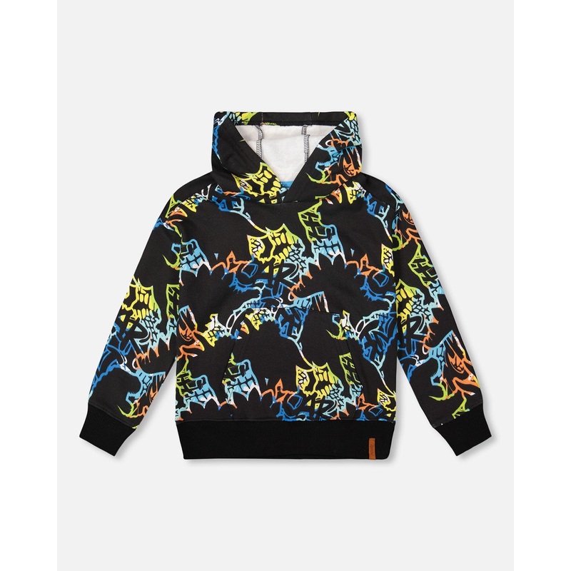 Detailed with a graffiti-inspired dinosaur graphic, this allover print hoodie adds bold color and vibrant style to any little boy's wardrobe. With long sleeves, an attached hood, and a kangaroo pouch pocket, this sweatshirt is a must-have for the little gu