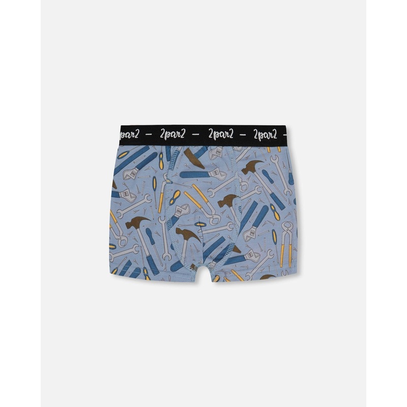 Printed Organic Cotton Boxer Shorts Tools On Bluish Gray Background
