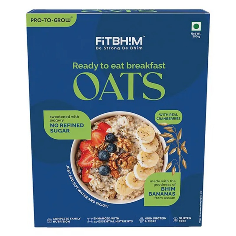 1. Nutritious & Wholesome Meal – Packed with fiber, protein, and essential nutrients, these breakfast oats provide sustained energy, keeping you full and nourished to support an active lifestyle throughout the day.2. Natural & Healthy Ingredients – Made with oats, Bhim Banana powder, and milk solids, these oats are rich in essential nutrients, supporting digestion and well-being.3. Energy-Boosting – Packed with complex carbs and protein to meet daily nutrition needs for ages 3+ years to adults, while high fiber supports gut health and better digestio4. Quick & Cholesterol-Friendly – Pre-mixed with milk for quick prep, just add hot water! Low in saturated fats, sodium, and cholesterol for a balanced diet.5. Versatile & Delicious – Enjoy as breakfast, mix with fruits or honey for extra taste, or use in baking cookies, cakes, and smoothies for a nutrition boost.SpecificationsBrand – Pro-To-GrowType – OatsProduct Dimension – L 20 x B 16 x H 5 cmNumber of Pieces – 1Product DescriptionIn today’s fast-paced world, convenience and health go hand-in-hand when it comes to food choices. Fitbhim Jaggery Oats Ready-To-Eat, packed in a 300g box, is designed to cater to the health-conscious individual who values both taste and nourishment. This unique product brings together the goodness of whole oats and the natural sweetness of jaggery, making it an ideal breakfast choice or snack for those looking to fuel their day with wholesome energy. But what truly sets Fitbhim Jaggery Oats apart is its use of Bhim Bananas, a special variety native to Assam, which adds an extra layer of nutritional value and flavor to the mix.Oats have long been recognized as one of the healthiest grains available. Packed with essential nutrients, they are an excellent source of dietary fiber, protein, and minerals like magnesium, phosphorus, and iron. These nutrients are crucial for maintaining good health, and oats have been linked to various health benefits, such as improved heart health, weight management, and digestive health. The high fiber content in oats helps in regulating digestion, promoting gut health, and keeping you full for longer, which in turn helps with weight management. Oats are also rich in antioxidants, particularly avenanthramides, which have anti-inflammatory properties, making them beneficial for overall wellness.Items Included In the Package1 box of Oats