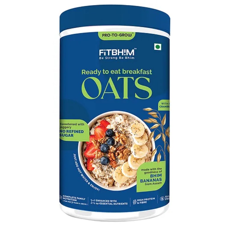 1. Nutritious & Wholesome Meal – Packed with fiber, protein, and essential nutrients, these breakfast oats provide sustained energy, keeping you full and nourished to support an active lifestyle throughout the day.2. Natural & Healthy Ingredients – Made with oats, Bhim Banana powder, and milk solids, these oats are rich in essential nutrients, supporting digestion and well-being.3. Energy-Boosting – Packed with complex carbs and protein to meet daily nutrition needs for ages 2+ years to adults, while high fiber supports gut health and better digestion.4. Quick & Cholesterol-Friendly – Pre-mixed with milk for quick prep, just add hot water! Low in saturated fats, sodium, and cholesterol for a balanced diet.5. Versatile & Delicious – Enjoy as breakfast, mix with fruits or honey for extra taste, or use in baking cookies, cakes, and smoothies for a nutrition boost.SpecificationsBrand – Pro-To-GrowType -OatsProduct Dimension – L 21 x B 10 x H 10 cmNumber of Pieces – 1Product DescriptionIn today’s fast-paced world, convenience and health go hand-in-hand when it comes to food choices. Fitbhim Jaggery Oats Ready-To-Eat is designed to cater to the health-conscious individual who values both taste and nourishment. This unique product brings together the goodness of whole oats and the natural sweetness of jaggery, making it an ideal breakfast choice or snack for those looking to fuel their day with wholesome energy. But what truly sets Fitbhim Jaggery Oats apart is its use of Bhim Bananas, a special variety native to Assam, which adds an extra layer of nutritional value and flavor to the mix.Oats have long been recognized as one of the healthiest grains available. Packed with essential nutrients, they are an excellent source of dietary fiber, protein, and minerals like magnesium, phosphorus, and iron. These nutrients are crucial for maintaining good health, and oats have been linked to various health benefits, such as improved heart health, weight management, and digestive health. The high fiber content in oats helps in regulating digestion, promoting gut health, and keeping you full for longer, which in turn helps with weight management. Oats are also rich in antioxidants, particularly avenanthramides, which have anti-inflammatory properties, making them beneficial for overall wellness.Items Included In the Package1 unit of Oats Jar